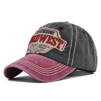 Batı kovboy Cowgirl yıkanmış pamuk sıkıntılı işlemeli WILDWEST doruğa kap spor beyzbol şapkaları