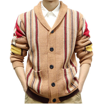 Batı Aztec Vintage Navajo tarzı erkek giyim sonbahar kış yeni jakarlı süveter hırka Retro yaka kazak ceketler